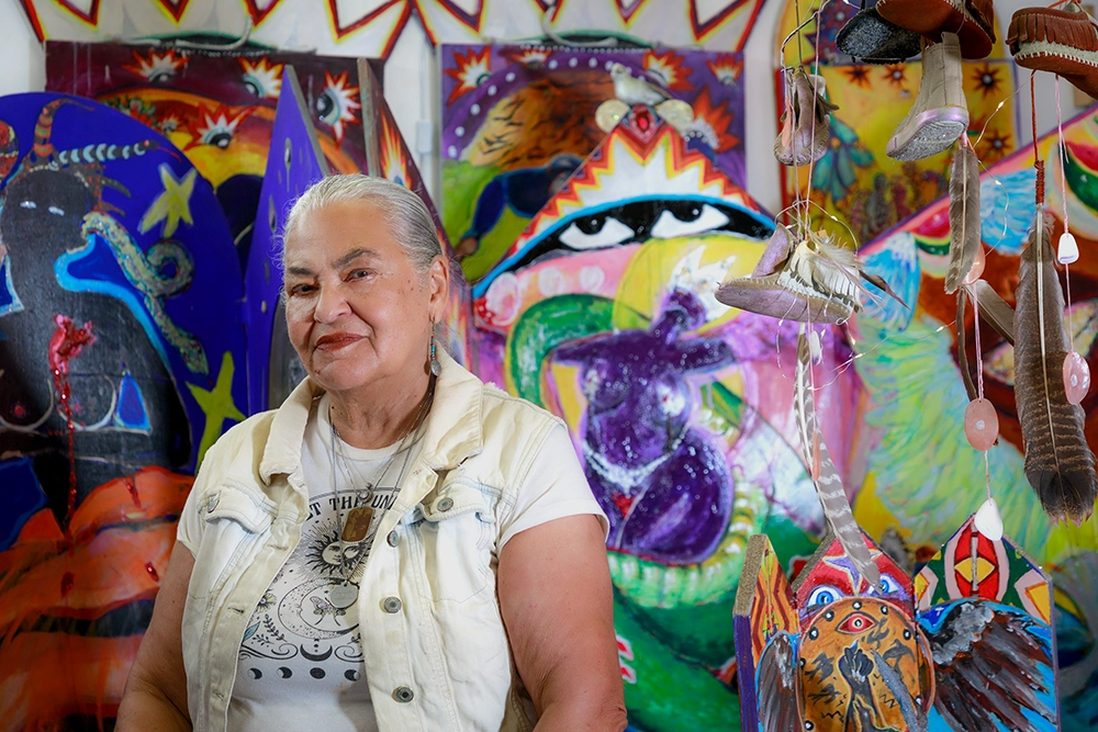 My art speaks to Indigenous and African resilience, womanhood, and the balance between tradition and contemporary life. Humor, honesty, and side-eye often find their way into the work—offering both confrontation and invitation. I believe art isn’t just something we see, but something we feel. I hope each piece opens space for connection, reflection, and renewal.